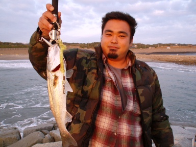 釣果報告(ソルト) 2009年10月21日 本日も行ってきました、サーフへ本日は、友人の山さんとコイケさんにご一緒いただきました、ついて早々にコイケさんのさおが曲がります!!50センチほどのシーバスGETです!!(狙いはヒラメですが結果オーライです) 私も釣ります、小規模ながら鳥山があるところへメタルジグをキャストしHIT!!ワカシです、コイケさんまたまた釣ります。終わってみればシーバス×1 ワカシ×5その他はバラシ多数です、サイズが小さくフッキングしない魚が多いです、山さんは本日は残念でした、またタイミング合えば一緒に行きましょう。 «前 次» スタッフ日記
