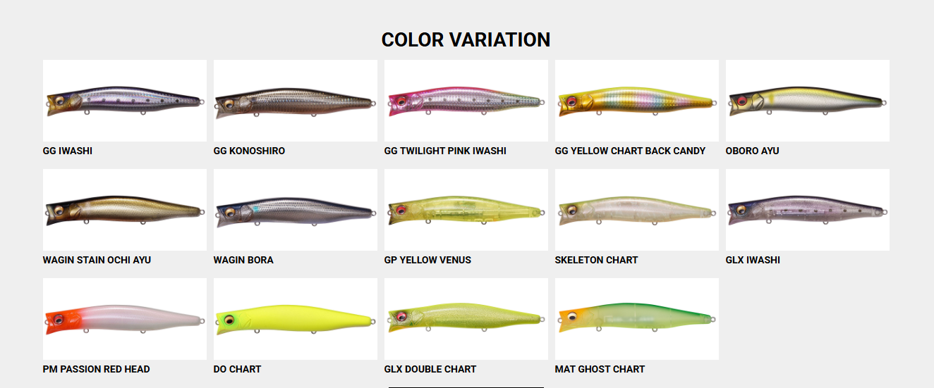 シーバスが表層を意識し、ボラや落ちアユ、コノシロ等の大型ベイトを捕食する状況でボリューム感のあるハイアピールボディが最も効果を発揮。大きく切られたダーターカップは水を受ける表面積の拡大により更に水を強く押し動かしターゲットへ猛烈にアピール。
