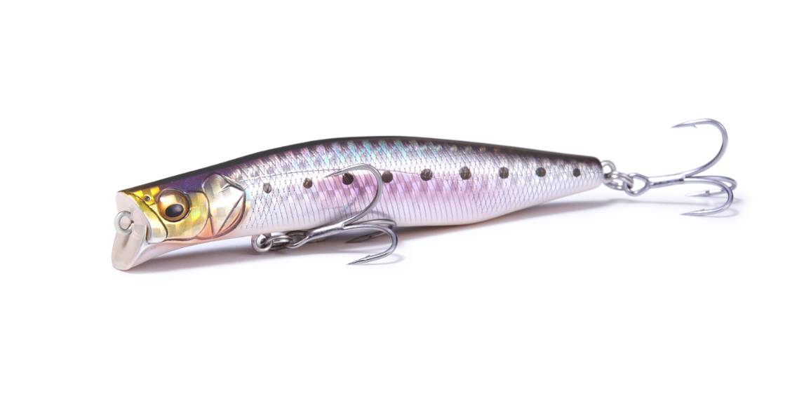 KAGELOU100Fは、シーバスが表層を意識し、イナッコ、カタクチなどの小型ベイトを捕食しているシチュエーションにアジャストします。KAGELOU124Fと同様、大きく切られたダーターカップで水を強く押し動かし、リトリーブスピード低〜中速域では微細なナチュラルロールアクションでバイトを誘発。リトリーブスピードを中〜高速化すればアピール力のあるスライドを伴ったロールアクションへと移行。